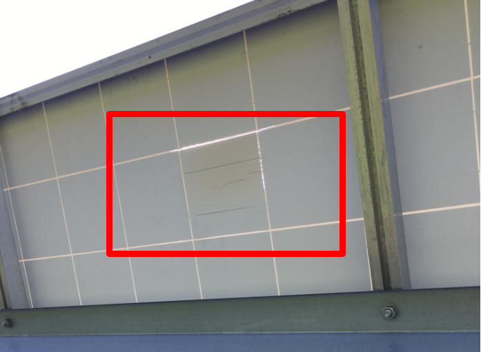 Rozpadnutí zadní strany panelu - vadný tedlar
